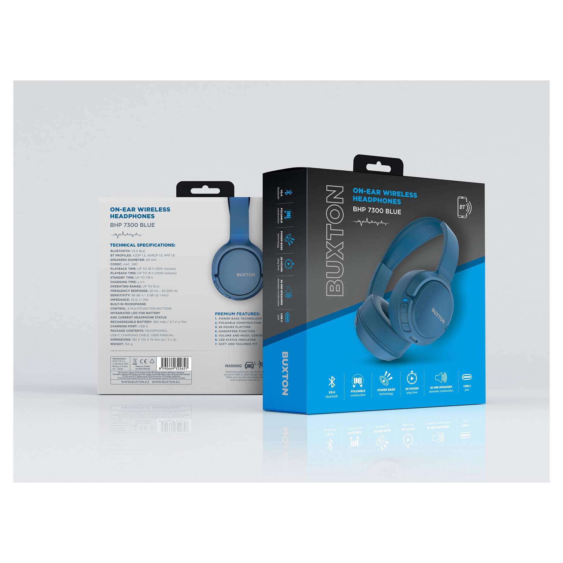 A Buxton BHP 7300 fejhallgató Bluetooth V5.3 BLE segítségével könnyen csatlakoztatható, a forrástól számított 15-méteres hatótávolsággal. Kitűnő a közvetlenül a fejhallgatón található hangerőszabályzó, a beépített mikrofon, a három többfunkciós vezérlőgomb, a kihangosító funkció és a LED-dióda, amely bármikor tájékoztat az akkumulátor szintjéről és a fejhallgató aktuális állapotáról. Az USB-C porton keresztül kevesebb mint két óra alatt feltöltött fejhallgató a kiválasztott maximális hangerőn 40 órán át, félhangerőn pedig akár 55 órán át képes játszani!